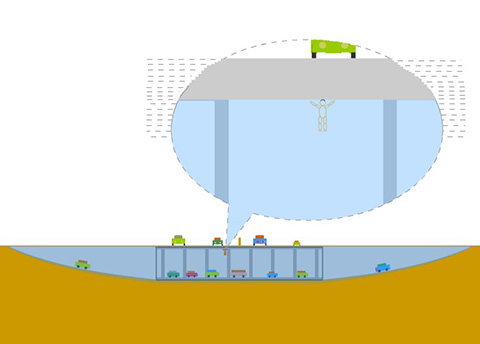 위는 지하차도의 대략적인 모습과 비 피해로 인해 물이 가득 차게 된 경우로 일부 확대도 입니다.