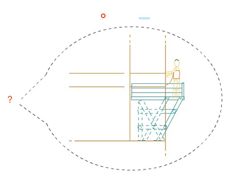 일반적인 고층의 건축물 구조인 아파트의 일반적인 보수 접근모습과 제안의 모습입니다.