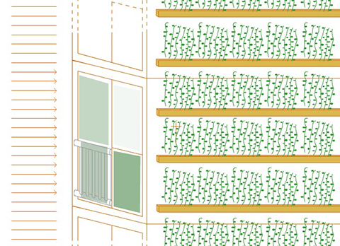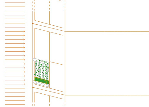 건축 이후에는 접근 자체가 어려운 측면 부위 등에는, 최초 시공 시에 약간의 토양이 담길 수 있는 공간을 이루어 놓고 차양에 효과적인 식물들이 자랄 수 있게 해 놓음은 어떠한가 싶습니다.