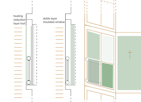 대체로 단열 이중 창호를 설치하거나, 차양막, 단열 뽁뽁이, 필름, 커튼 등 을 내부에 설치하고 있습니다.