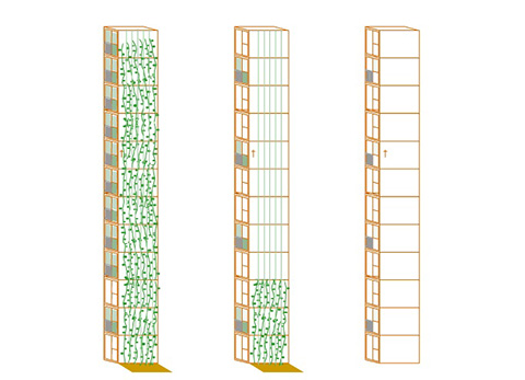 기존 건축물 등 경우에는 지역에 따른 차이가 있겠으나 주로 볕이 드는 동과 서쪽 외벽에 긴 봉, 줄 등을 설치하여 착한 덩굴류가 생장할 수 있게 하는 모습도 좋을 것 같습니다.