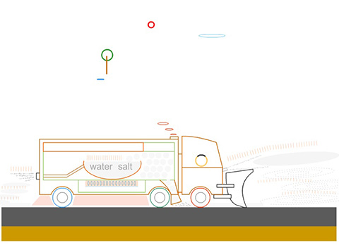 적절하게 제작된 장치를 탑재한 제설 차량을 운행하며 눈을 흡입하여 가열하여 물을 만들고 염화나트륨을 섞은 후에, 따뜻한 제설용 소금물을 만들어 필요한 곳에 배출해 보는 것은 어떠한가 싶습니다.