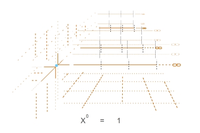 ' 그림의 공식 ' 과도 같이 중심점을 기점으로, 공간의 전, 후, 좌, 우, 상, 하 등의 곳에 X 값의 어떠한 승이 오더라도, + 덧셈과 - 뺄셈 같은 나름의 순차적 증감과는 다른, 전후좌우상하의 모든 곳이 지정된 배율로 증감이 이루어지므로, X의 자리에 0을 제외한 숫자의 몇 제곱 승의 경우에, 그 공간 배율의 곱한 값을 지니게 된다 는 수학 명제는 오늘날에도 유용하게 사용되고 있습니다.